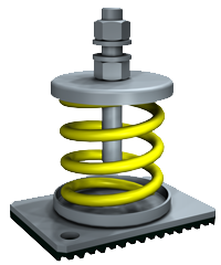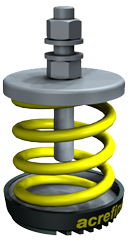 Isolateurs à ressort autoportant pour équipement au sol. Flexion de 1''. Capacité de 12 Kg (26 Lb). Plaque en acier à ancrer.