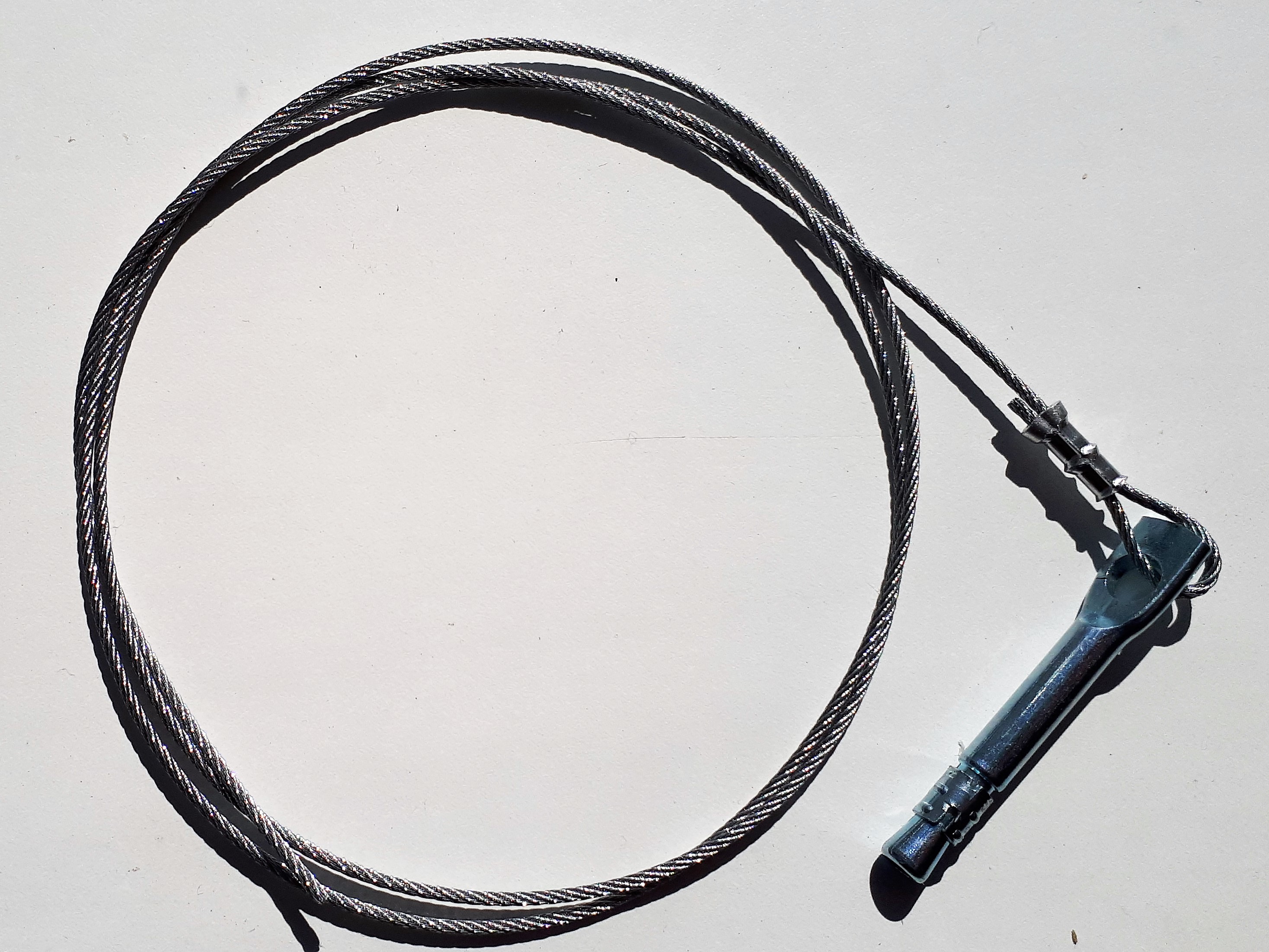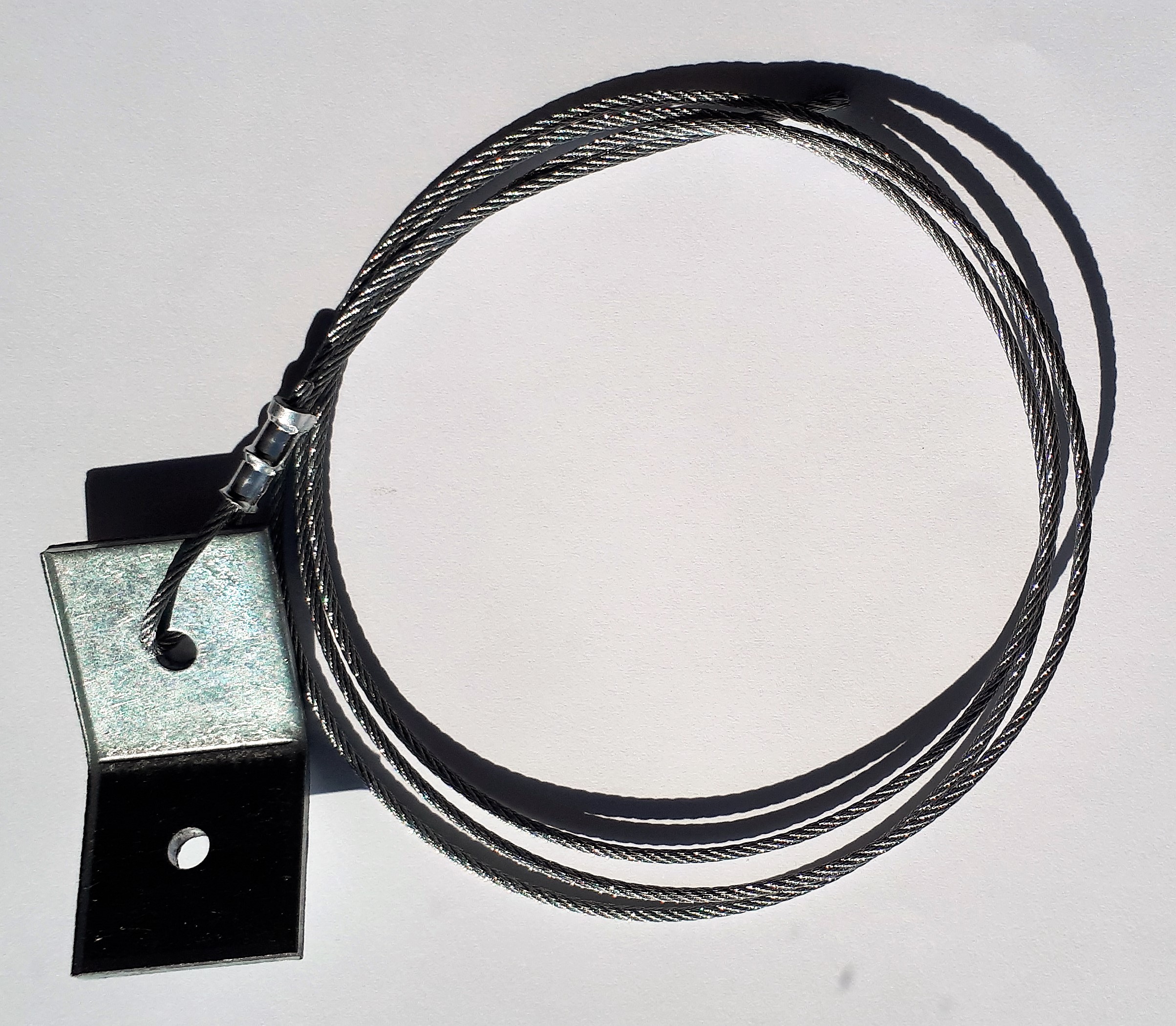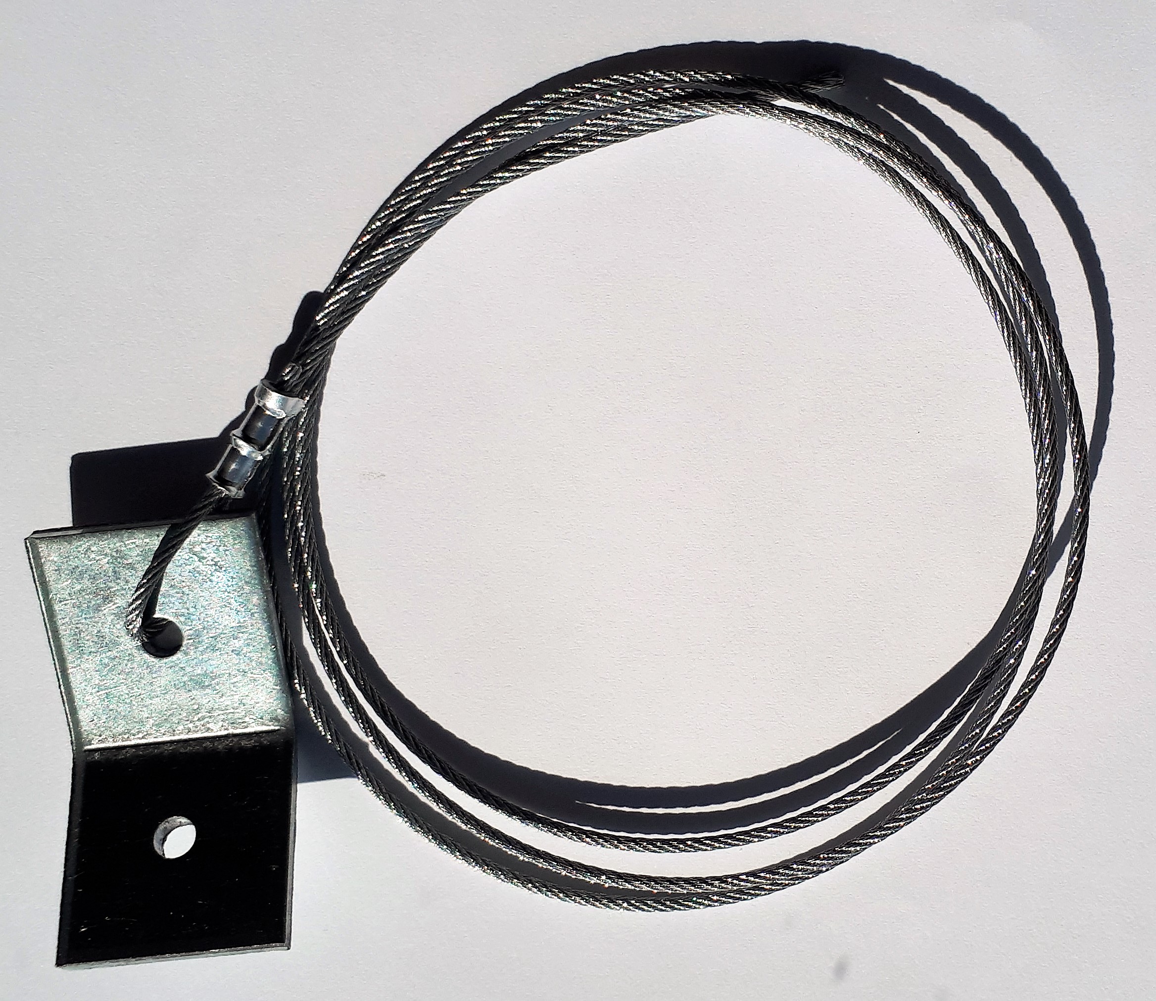 Câble d'acier 1/16'' assemblé avec un équerre à un bout. 4' de long.