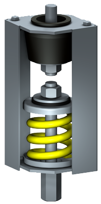 Isolateur combiné ressort/caoutchouc avec une flexion de 1''. Capacité de 12 Kg (25 Lb).