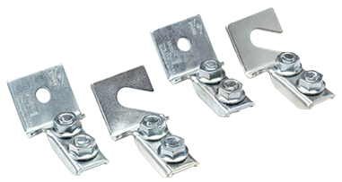 Plaque d'acier pliée avec un trou 3/8''. 1/8'' d'épaisseur. Boîte de 100.